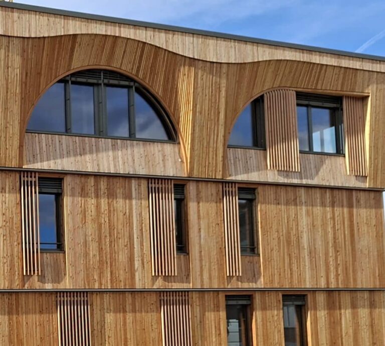 Naturbelassenes Mondholz hat besondere Eigenschaften, die es zum perfekten Baustoff und Fassadenmaterial für ein Spital machen.